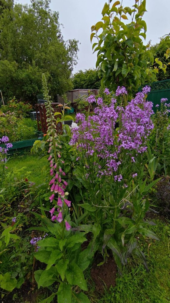Look at those Night-scented stock!! I guess they are at least 1.2M high and offer massive flowers. They are biennials, but wow, so impressive. I have several plants in different corners, and they act like purple-pink firework.
