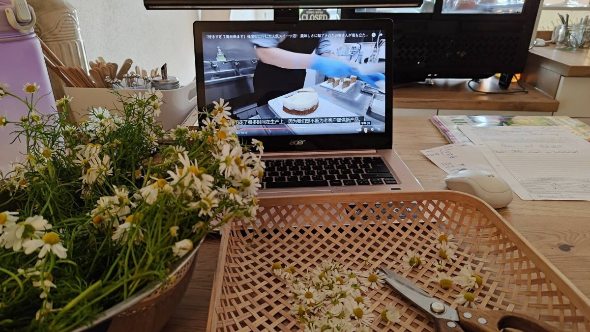 Harvested the first batch of chamomoiles while watching the mini documentaries about similar community-based coffee/bakery shops in the cafe. I'm pretty happy that more locals visited the shop and felt pleased with the food and drinks I provide. It's something new and joyful not only for them, but also for me.