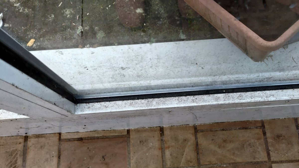 I removed the shelves on this side and started cleaning both the glasses and metal frame. Pretty terrified - a lot of dead insect bodies as spiders also became residents.