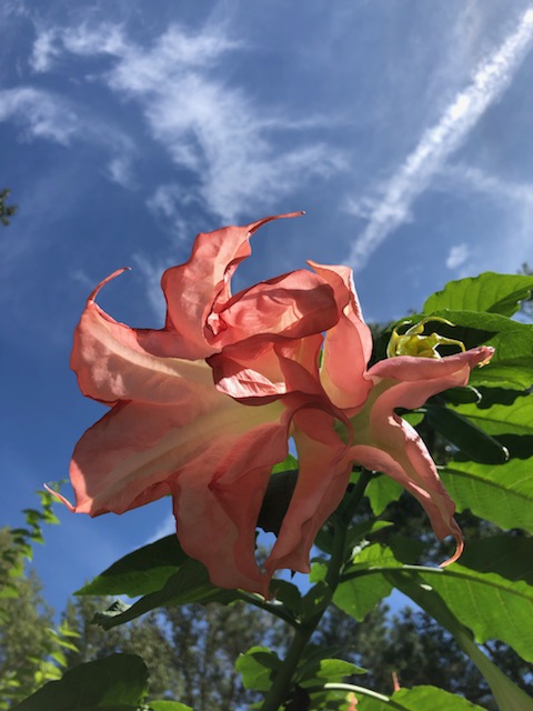 It is BEAUTIFULGrandmother-In-Law's Pink Angel Trumpet is blooming, and gosh it's beautiful!