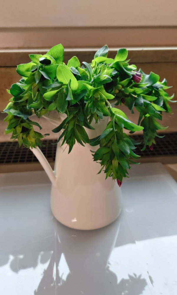 This is from 2 sweet potato plants. A few others were already eaten from this digging. I wish the photo showed how big they really are. There are 2 giants, each serve 2. Three medium, service for 1, and a hand full of small but delicious potatoes. Taking a break and then will go and dig some more.