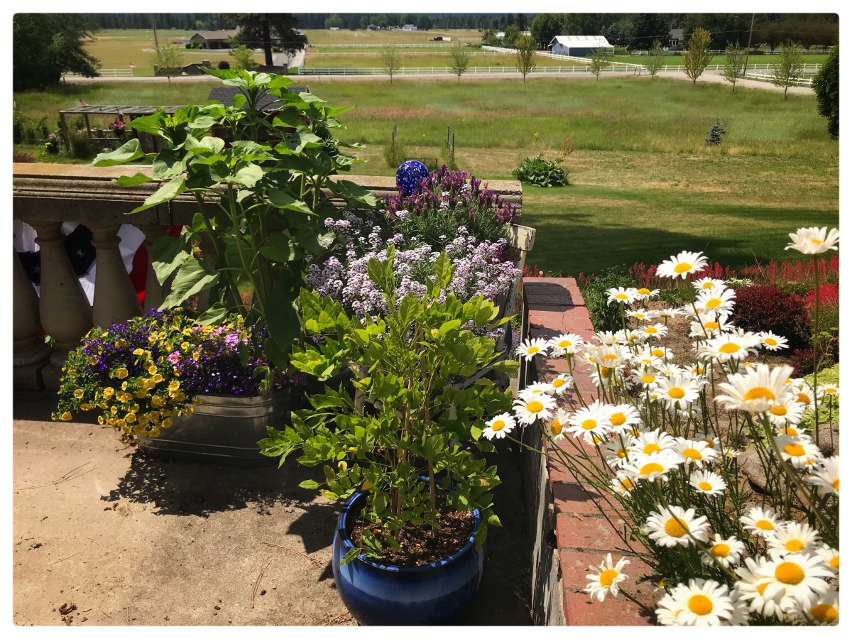 The sunflowers were planted by the birds... my favorite garden helpers. The deer haven’t found the sunflowers yet!