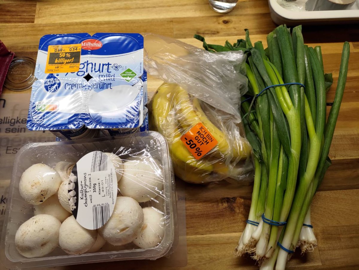 Maybe the employees had a busy day, till evening they didn't put the 50% discount stickers on. After confirming with the shop manager, I brought all food that due today or tomorrow to her and got everything labeled appropriately. Well, it's absolutely a win-win-win situation.