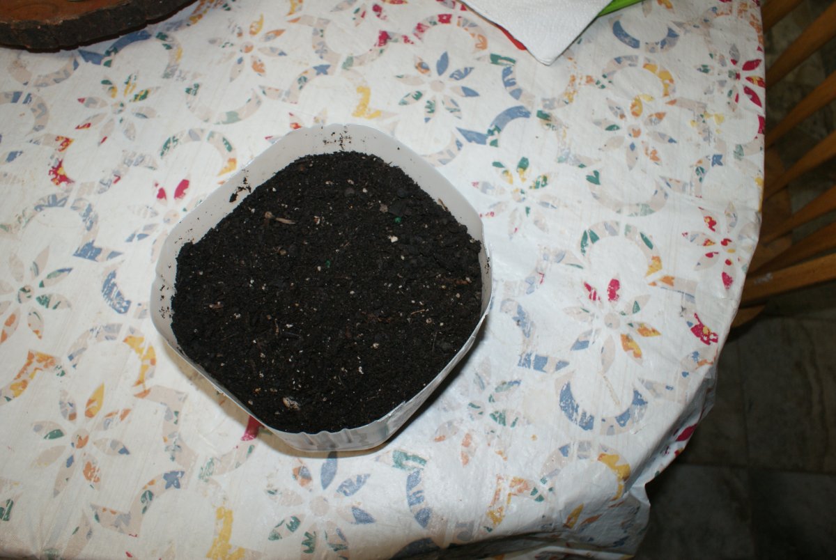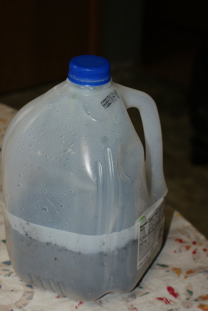 Milk jug bottom with soil.