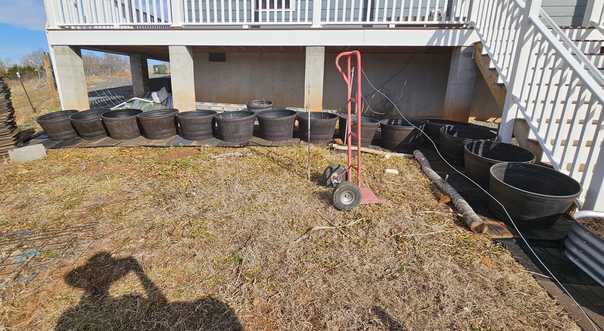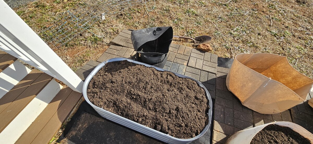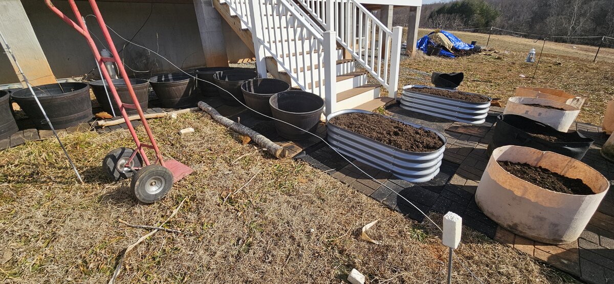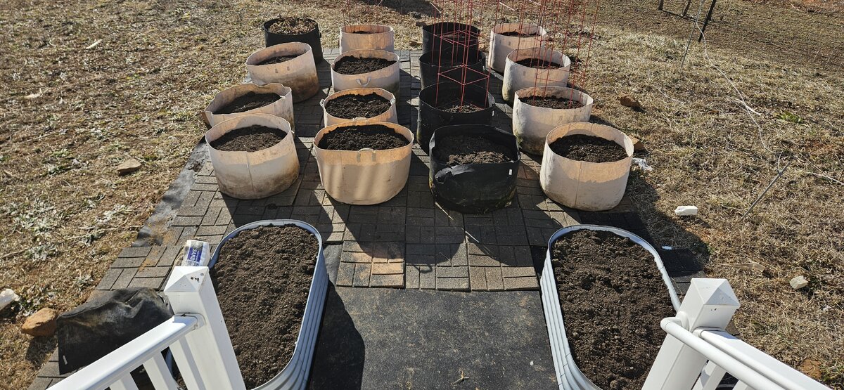 Then laid out cloth for the pots and added more pavers. Gotta move the grounding rod.