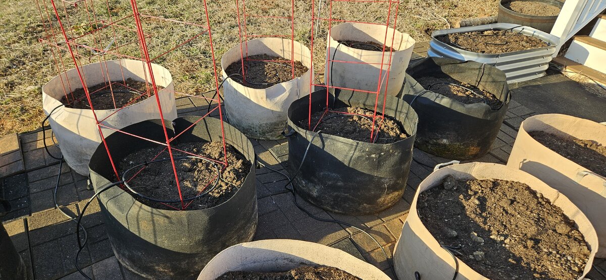 Repotted most of the tomatoes that are left.