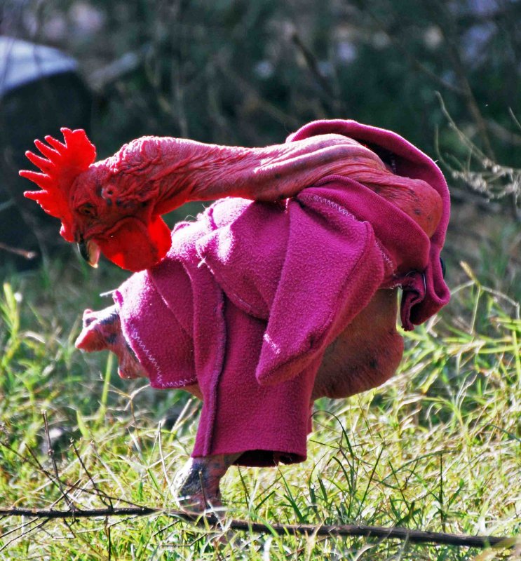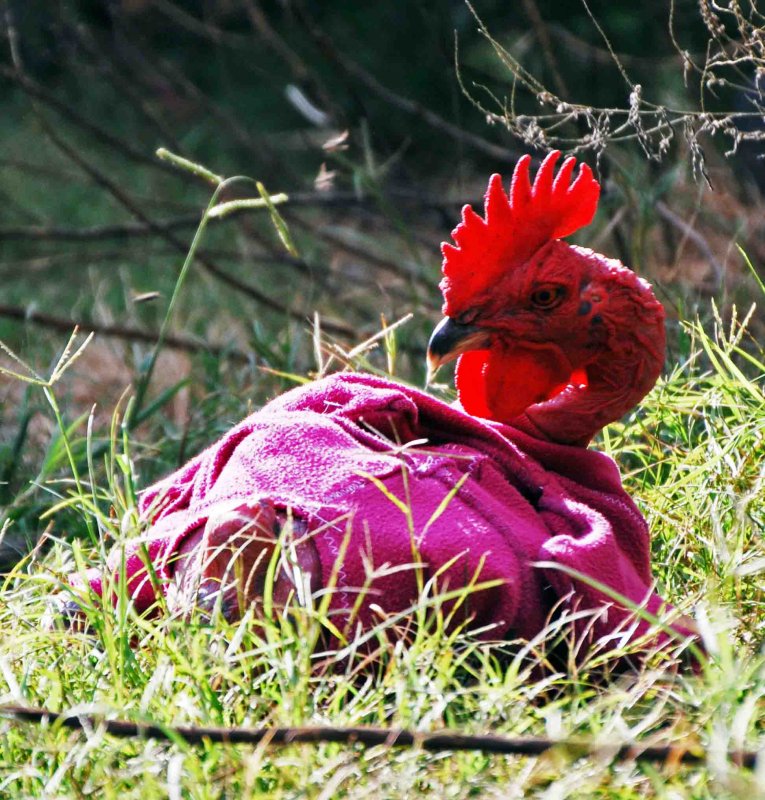 Okay guys, Miss Phyllis went broody, but that poses some logistic problems, how does a momma chicken keep her babies warm w/o feathers. The answer of course is a special maternity dress, like that wasn't obvious