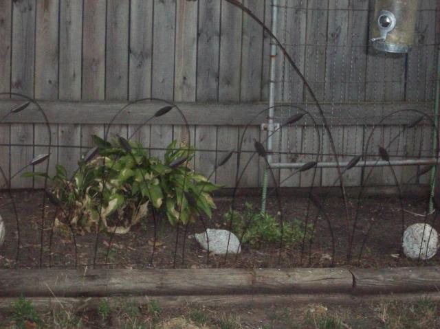 This bed is usually full of deadnettle, hosta and ajuga. Hosta looks well done, too. The gate in upper right is supposed to have sweet peas on it. *sigh* Maybe next summer.