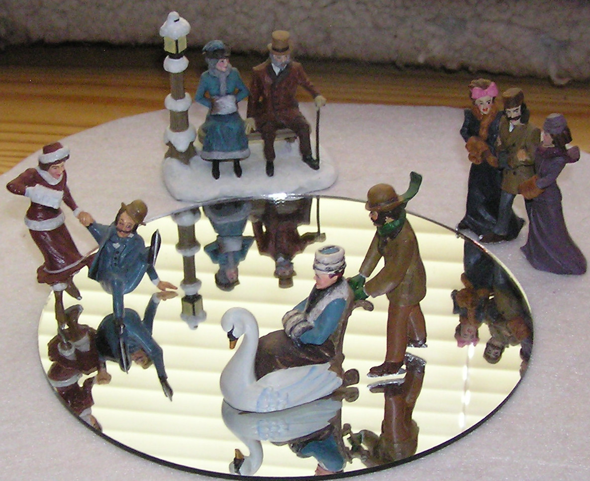 Tiny town, it cost $4.99 in 1972. We didn't have much money, but saw this and thought "for less than $5 why not?" It came with a string of lights (long since replaced) 2 of the 3 houses, corresponding barns, church, 2 trees, and skating pond with a few skaters. We've added to it over the years but the original accessories miraculously continue on.