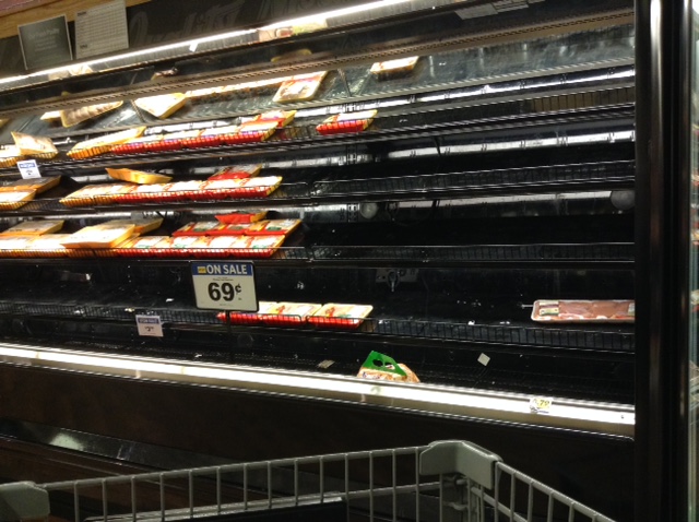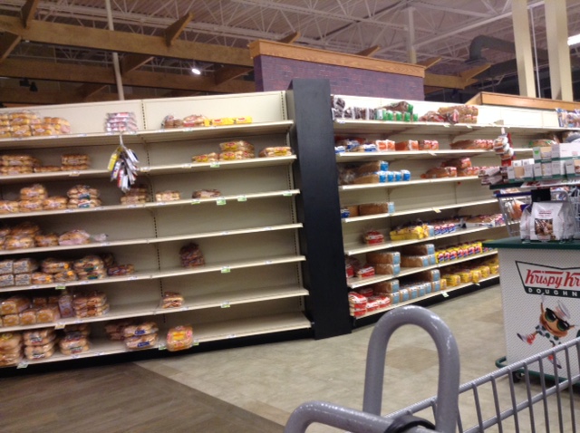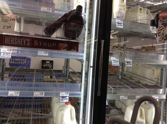 That's what my son said...milk sandwiches. I'm guessing french toast because they usually get eggs too. Wondering why they don't get canned goods, things that don't go back when the power goes out.