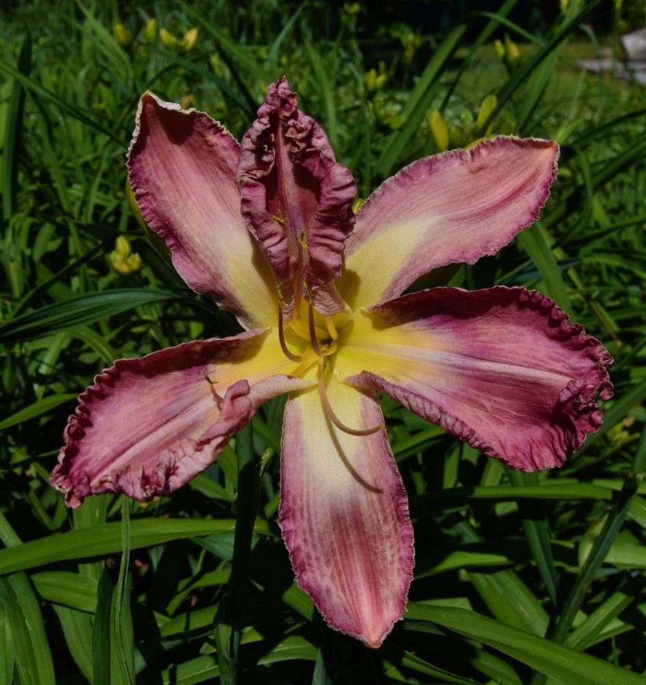 Thanks no. Im sorry cant remember none of the names my daylillies lol! My Uncle used to sell them commercially years and years ago.He was into it heavy.Had acres of different kinds. I have a couple heirlooms and this was one he crossed and made. heres anotherThat is stunning! Do you know the name of it? Fuschia is my favorite color.