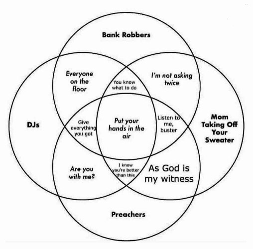 Much before classroom computers, overhead projectors were used but I don't recall Venn diagrams back then. In one college class, I can remember a professor who enjoyed pacing back and forth in the front of the room during his lectures. I remember wondering what his subconscious mind was thinking, as he passed repeatedly in and out of the light as he continued to do this pacing while projecting on the screen up there.