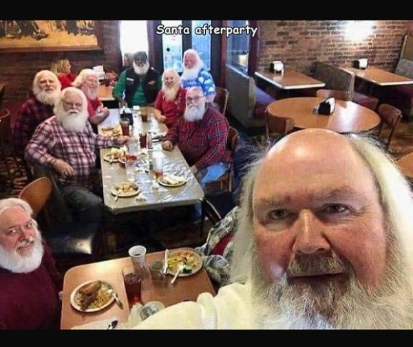 like i'd stumbled upon an off-season Santa look-alike contest... (no i don't know if i used hyphens correctly, you'll have to consider my unsophisticated and unhyphonated for this moment in recovery)