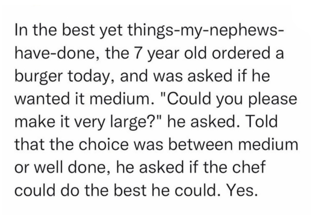 I assume if she had asked if he wanted it rare, he probably would have said "no, I want it to be common enough that I can get another one at some point if I want."