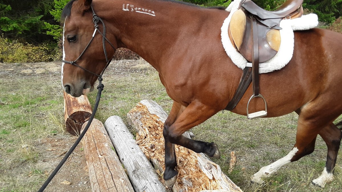 Yes, she is handy with her feet and intelligent about where she puts them. I lead her cross country through woods and a lot of downfalls. She has to work out hoof placement in some of the more complicated tangles. Sometimes there are places where a tree trunk rotted away and where the trunk was is filled with duff, nearly unrecognizable as a hazard until you step in it and it collapses. I try to avoid those if I can, but she has shown me how she is observant and careful.