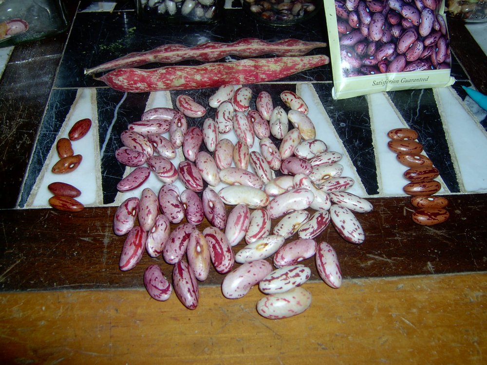 The HARARE SUGAR bean is a pole bean, but not one to grow overly tall, I'd probably classify it as a half-runner. Of the six seeds I received to plant, I managed to get 34 seeds harvested. I'll keep a few and send you most of the remaining. WIth so few pods, I didn't get to taste them, but the seeds are beautiful.