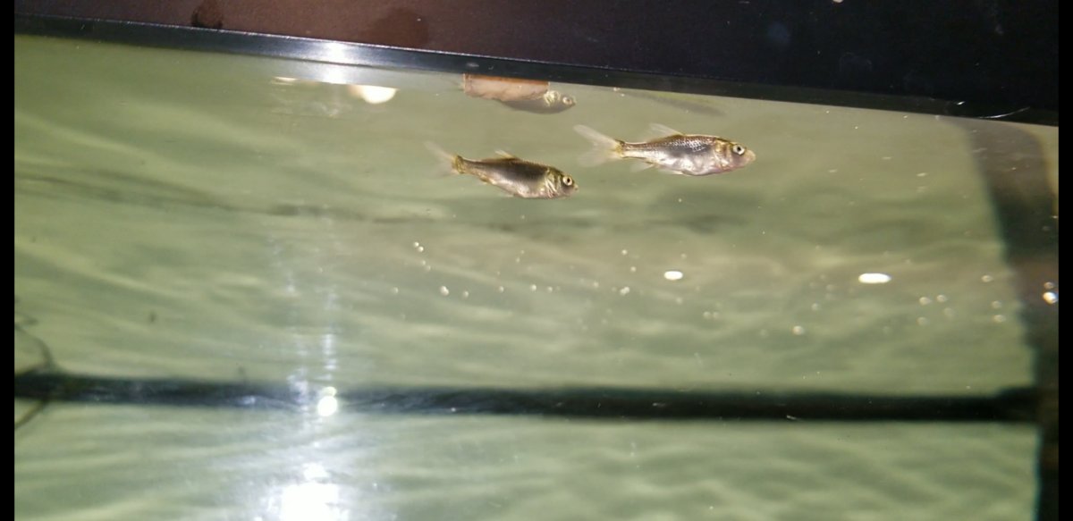 Jun 3, 2019 Thread starter #173 secuono Garden Master Joined Jun 1, 2011 Messages 2,662 Reaction score 2,939 Points 317 Location VA Moved the 2 koi fry into big tank. Grow, fry! Grow!!