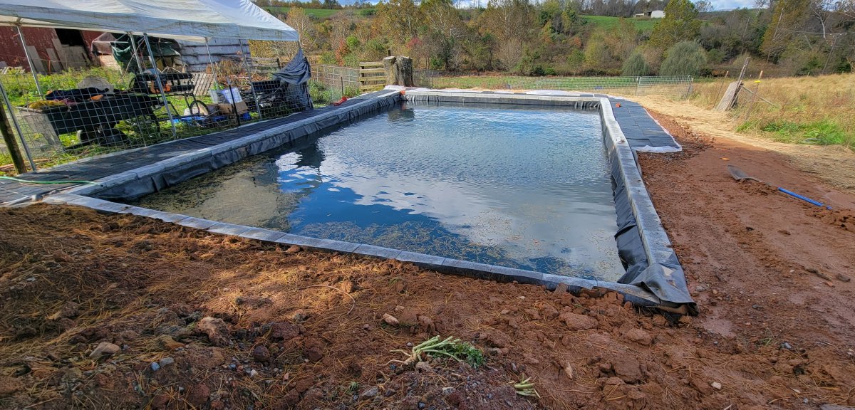 Didn't lay out liner quite right and walls need raised a few inches on right end. Will use old liner to glue onto it to fix that next year.