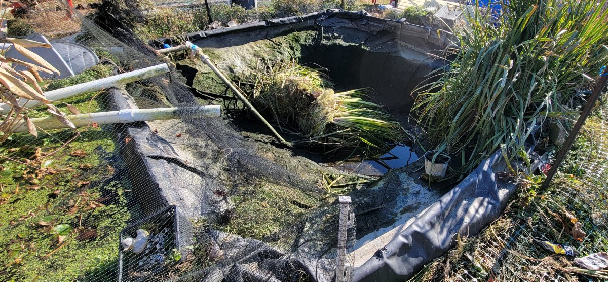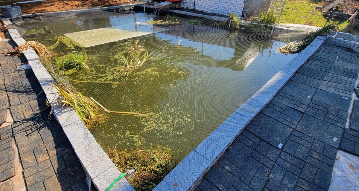 New pond netted, barely! Net was smaller than listed.