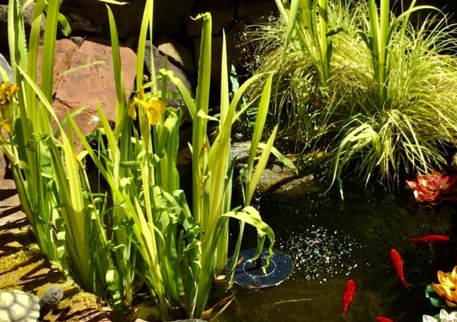 My little pond has fish muddies really just goldfish. I have lost so many fish over the years to raccoons and a heron that lives by the creek. I don’t stock spendy fish any more, but here’s a pic of the water yellow flag iris pseudacorus grows in very wet conditions, and is common in wetlands, where it tolerates submersion, low pH, and anoxia soils. The plant spreads quickly, by both rhizome and water-dispersed seed. Every other year I pull it out and trim it to size.