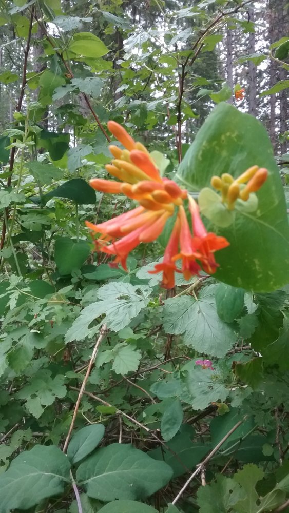 I took some pictures from horseback, but most were too blurry. I can't get Luke to be still and hold his breath. Here's a honeysuckle and a thimbleberry.