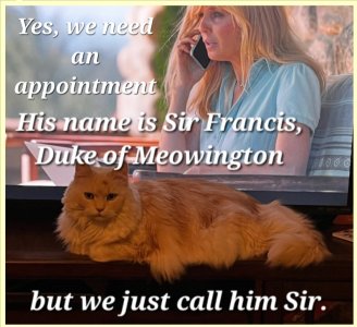 DD's cat, Troll Bridge is AKA Little Lord Fauntleroy bc of his "baggy pants" back leg fur which switshes on his way up and down the stairs.