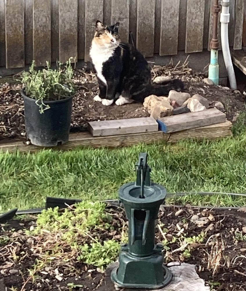 The tortoise shell cat has pulled it up, rolled on it, broke the stems — 3 times! I put rocks around it but she pulled it up again. I questioned if there was any life left in it and just left it on the ground.
