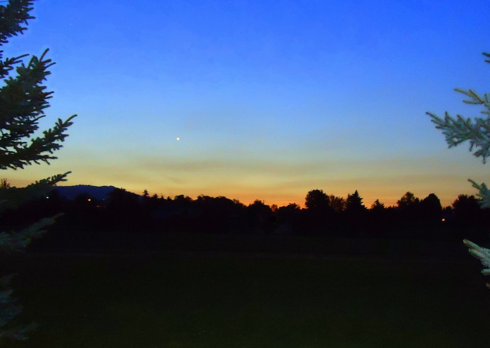 It seems so bright I thought it had to be a planet but, right now, I'm not sure. I guess it is Sirius, the dog star. I'd have to see the other stars around it to locate the constellation and they'd faded in the sunrise. The dog is jumping on Orion! I did some enhancing because the colors were muted, maybe because the dang flash goes off.