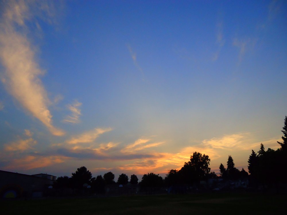 LOVE that second pic!!!!!Well, I tried to do the half-click thing. I haven't figured it out. This is from the school playground. There were still 4 dedicated guys out there playing basketball. It was 100° at the nearest weather station yesterday afternoon. By the looks of their sweatsoaked shirts, they must have been there quite awhile and likely paid no attention to me when the camera flash went off: