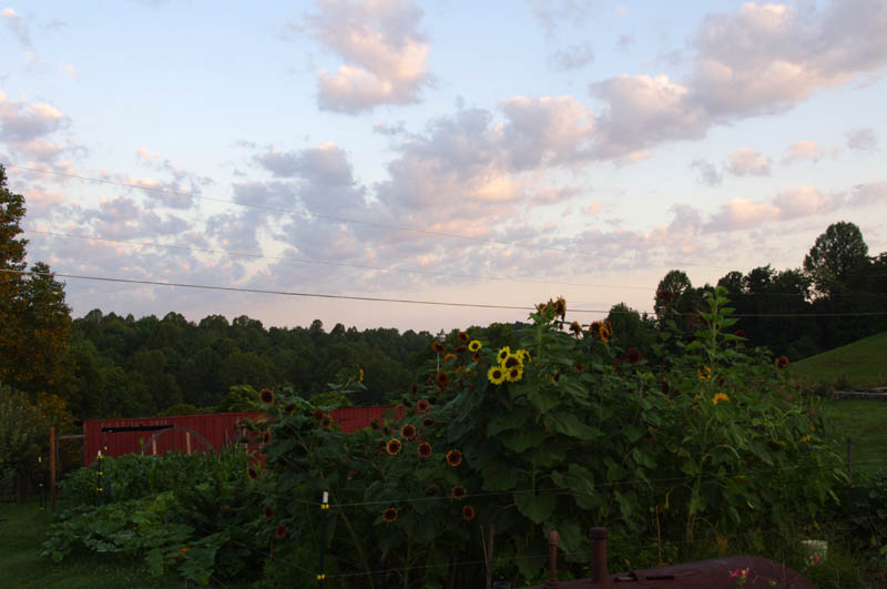 Here is about an hour after sunrise in the garden this morning. The sun was trying awfully hard to break thru the clouds: