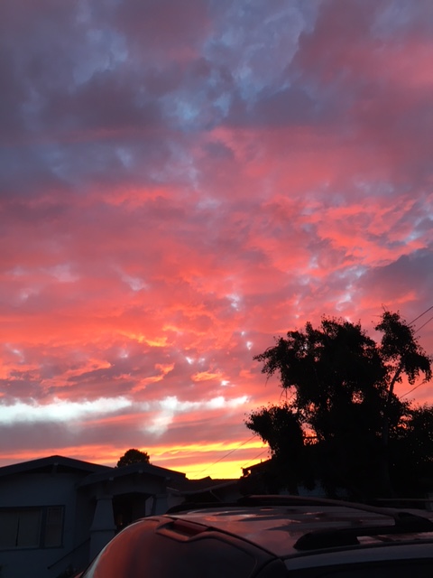 I saw it from my prone position on the couch. It was gorgeous rising above the tops of the pines with a skein of clouds glowing in front of it. Then I shuffled off to bed.