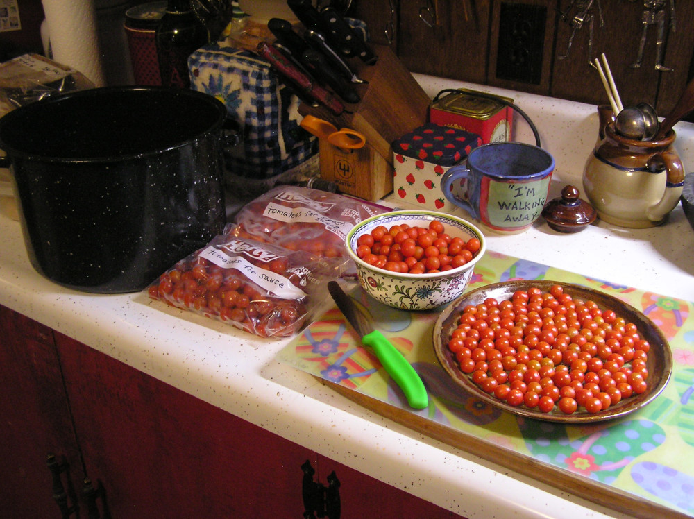 i was hoping we could get all the tomatoes done this morning and afternoon but as it turns out a bucket that was sitting there that i thought was green tomatoes was really some reject ones that Mom picked thinking we could get something from them. so when i thought i was done Mom said but you have another bucket out there? so... tomorrow i'll look at them and decide if i want to bury them or process them. since i did 26 more quarts today i'm likely to just vote for burying them with the rest of the tomato scraps and call it done. they're small, they're mostly off the ground and it will be a lot of work to get a few quarts out of them. yes, i may just talk myself into burying them tomorrow...