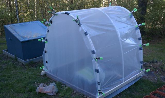 Boyfriend built me two 4x4 raised beds last year. This year he put a hoop house on one of them. So far it's really doing great, temperature-wise. Today it was up to 129, on a 75-ish and sunny-ish day. I haven't planted anything in it yet, just superheating the soil. I'm thinking of doing my melons in there, but I'm not sure how well that will work because they will essentially vine right out of the thing shortly. I'm wondering though if it would work well because the roots will still be protected from a lot of rain and will be warmer.