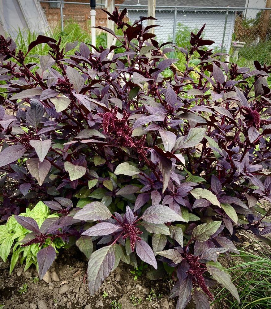 I ended up with several volunteer ground cherry plants, and are they ever lush and beautiful for late summer. This photo also includes an orange cherry tomato that popped up-- and yesterday I saw a dark purple petunia peeking through the foliage as well. These plants all showed up uninvited, but are so welcome in my garden. :)