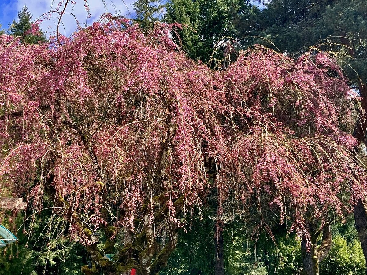 One of my favoriates are the weeping cherry trees in spring bloom. This one is 50 years old.