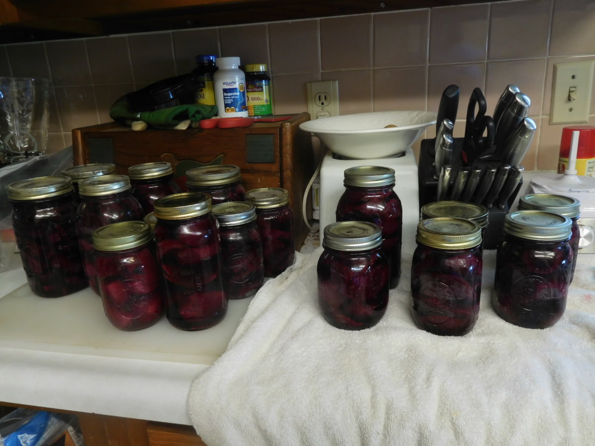 I lost 6 from the harvest. 2 were mushy and went to the chickens. Two were eaten (quality control) and two were consumed with our steaks last night. All told, I ended up with 11 1/2 quarts and I got it done in ONE day!