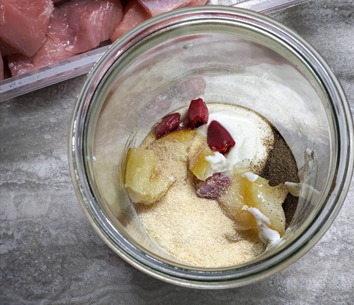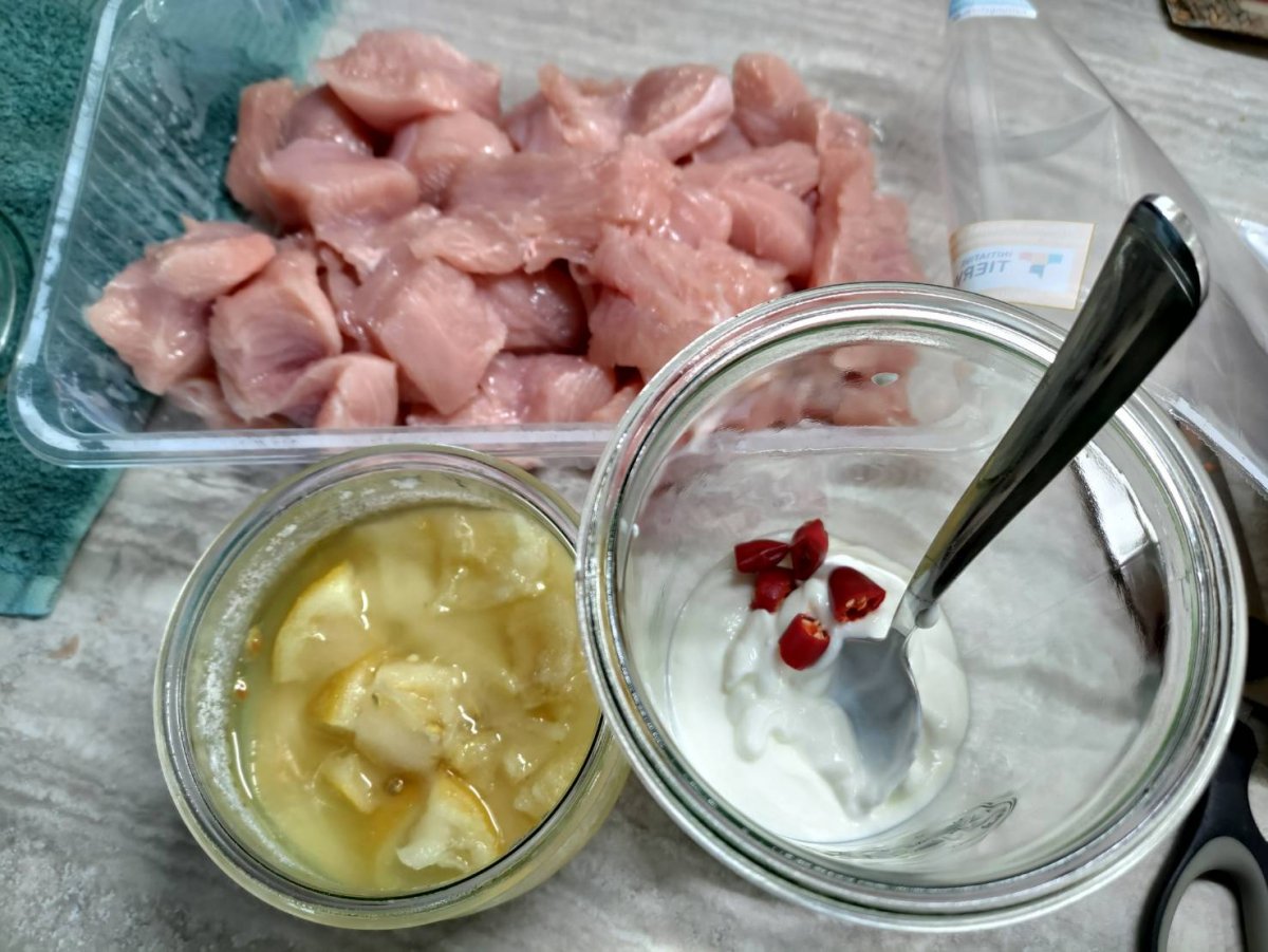 Also some fried chicken (in fact turkey breast), chopped and marinated in the fridge one full day with the mixture of yogurt, chili, salted lemon, garlic powder and black pepper.