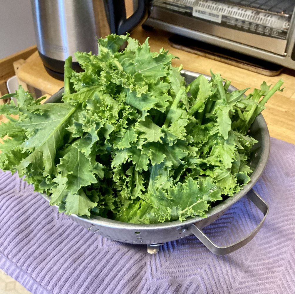 Covering the 2 backyard beds with plastic film in the Spring works well with the kale. I think that this is the 3rd or 4th time we have had it in the kitchen, from just a few plants.