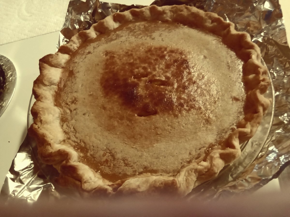 Three steaming hot, pumpkin pies are just now coming out of the oven... will have to sit awhile before going into the fridge.