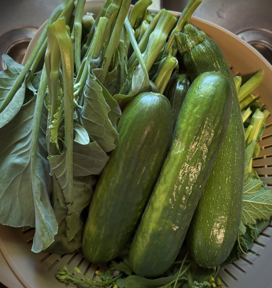 The 2nd and 3rd Muncher cucumbers ⬆️. There was an earlier zucchini but I don’t know what happened to it … :)
