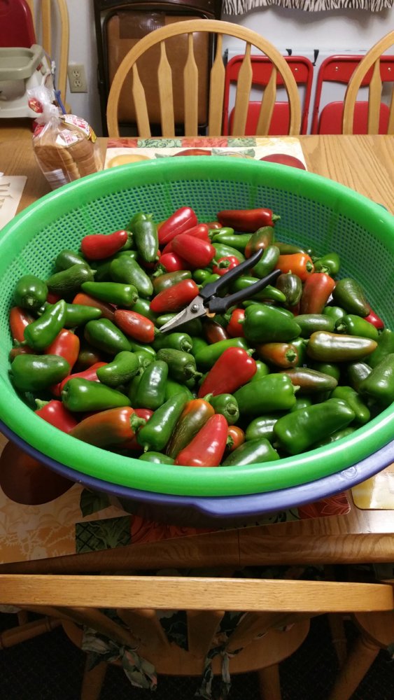 That sounds delicious... if I knew the recipe, that would be my plan for Saturday morning (hint... hint...). :drool I still have a few ripe jalapenos set aside too, and some ripe "Pizza" peppers left over from seed saving. I'd have to test one batch with those, before trying anything hotter (like the serranos, or a reaper).