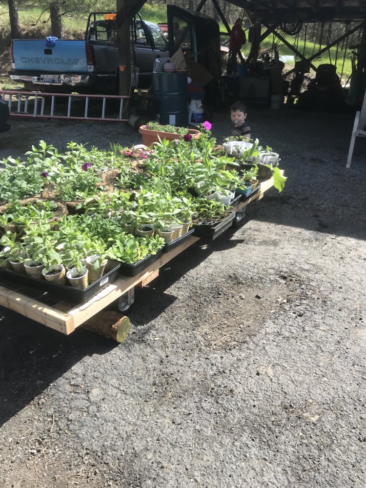 I have not had a whole lot of free time for the last few months, my job is taking up to 75hrs per week. But we have prepared the garden and planted some stuff already. We do the bulk of planting this coming weekend. I did have time to build a cart that DW can push in and out of the car port for hardening the plants off.View attachment 31526