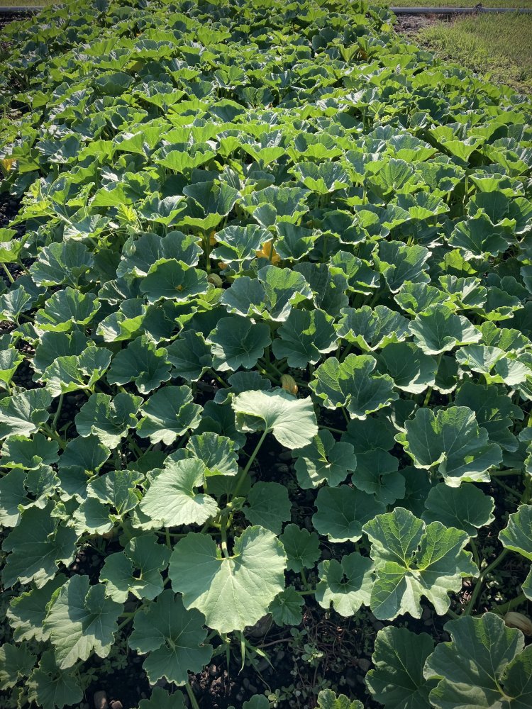 These winter squash vines also seem happy, Buttercup and Cha Ca Kabocha. Looks like another good winter squash year: