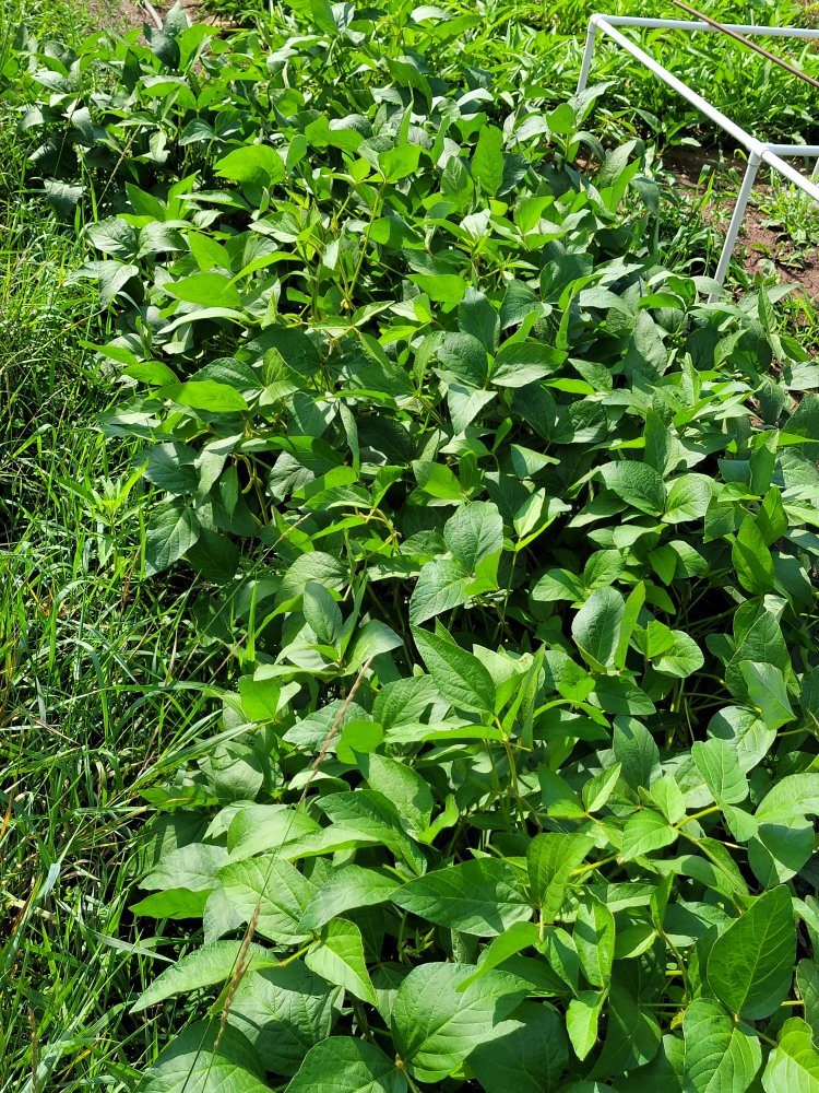 All of the tomatoes there are languishing too. Other vegetables have been more tolerant of the wet ground. The Garden Huckleberry, while less robust than I have seen it at Heritage Farm, is still healthy & producing a good set of berries... and apparently the birds have no interest in them. All of the soybeans but one (on the low end) are as healthy as normal. We picked some of the earliest edamame soybeans (Sakamotowase) today, and had them with dinner.
