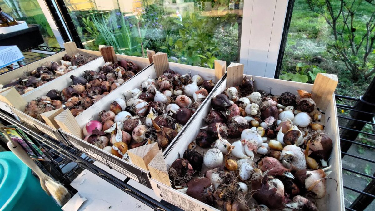 Those bulbs are resting in the greenhouse and getting dry. For those very tiny ones, I will dig a trench near the garden shed - and let them grow for two to three years. Theoretically, there should be nice blossoms after a few years.