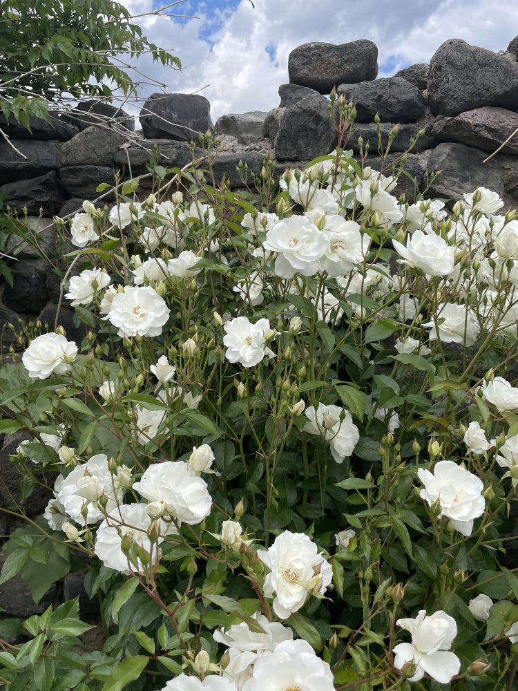 I pulled a ton of weeds by the rock wall, in front of the roses I went after with my chainsaw this spring, and cut down to nothing.