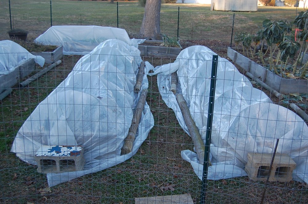 @majorcatfish, your garden must be in a wind-protected area. I had to use much more extensive means of securing the plastic and agribond on the bottom edges because the wind is so bad here. And, we live on a ridge, of sorts, so the north and west wind really blows hard. I buried the agribon, on the west side, and then when I put the plastic over the top, I used concrete blocks to hold it down. :barnie Well, at least it has worked so far.