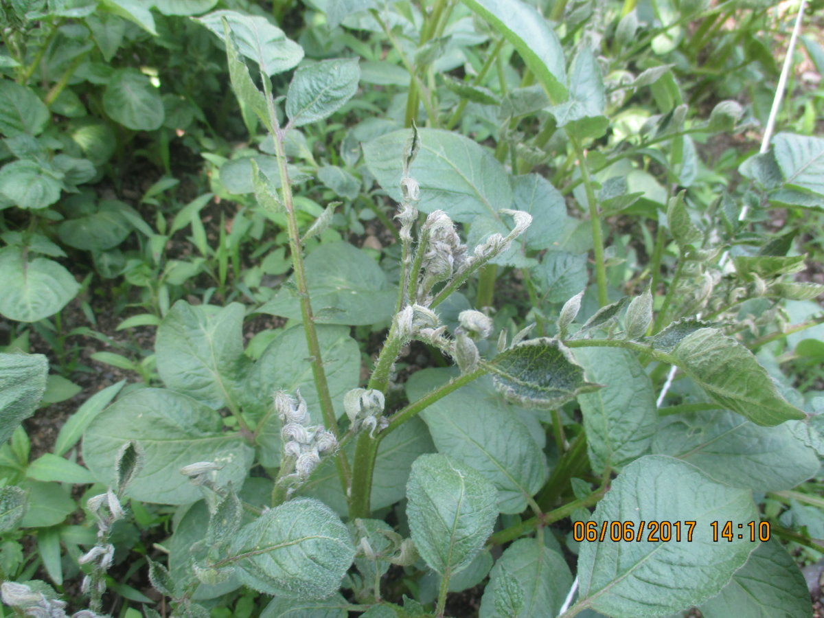 Herbicides don't work/carryover like some of you believe. If it was herbicide damage from manure/straw it would take out ALL the potatoes plus your peppers, tomatoes, etc. all broad leafs would be dead.