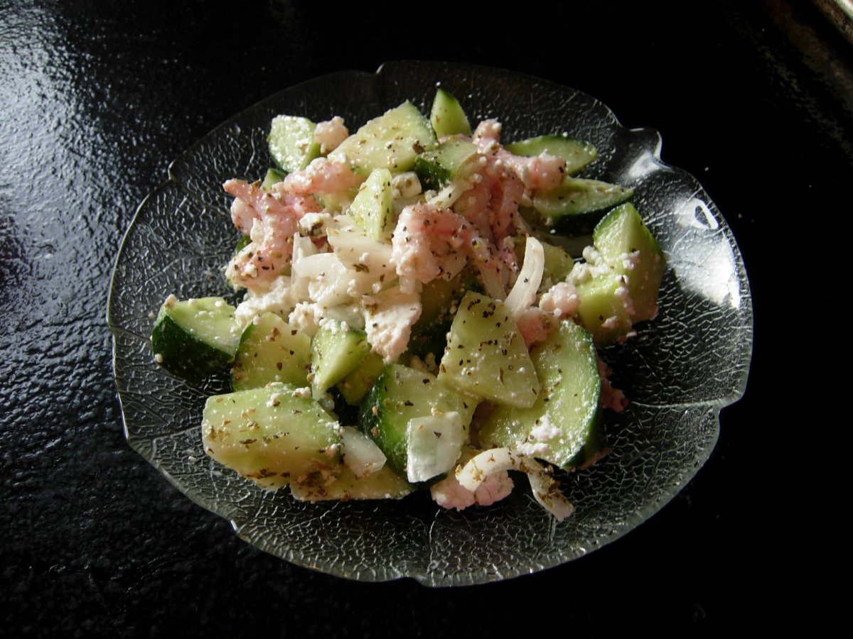 All this talk about salads got me going I made a shrimp and cucumber salad to go with a couple of slices of ham and a crusty roll tonight.
