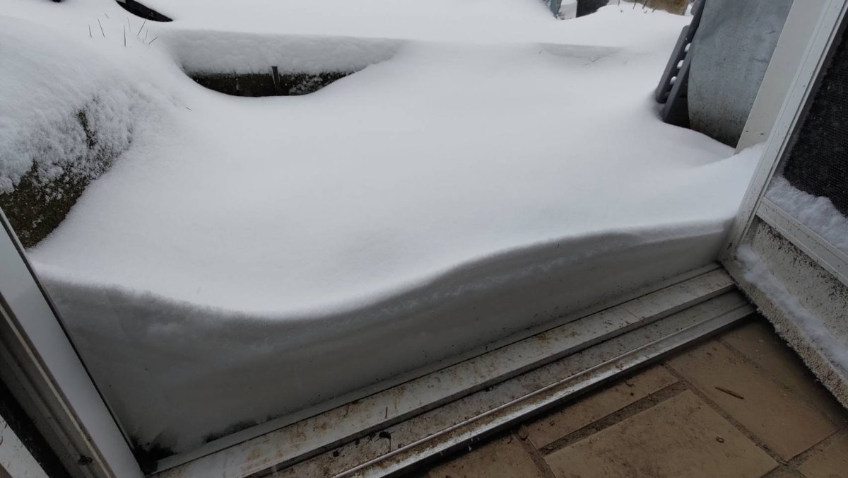 The temperature dropped, and it started snowing from noontime.